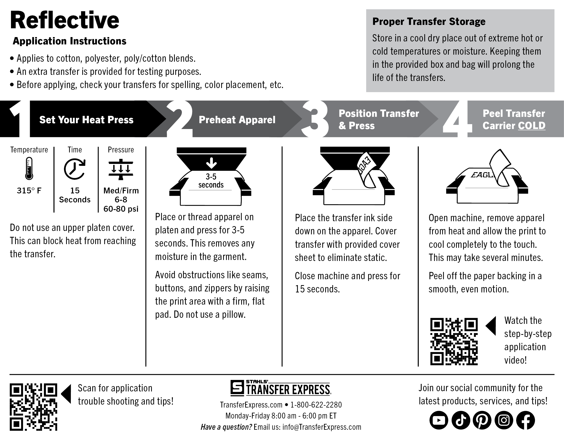 The following application instructions are for using with a Hotronix brand heat press.