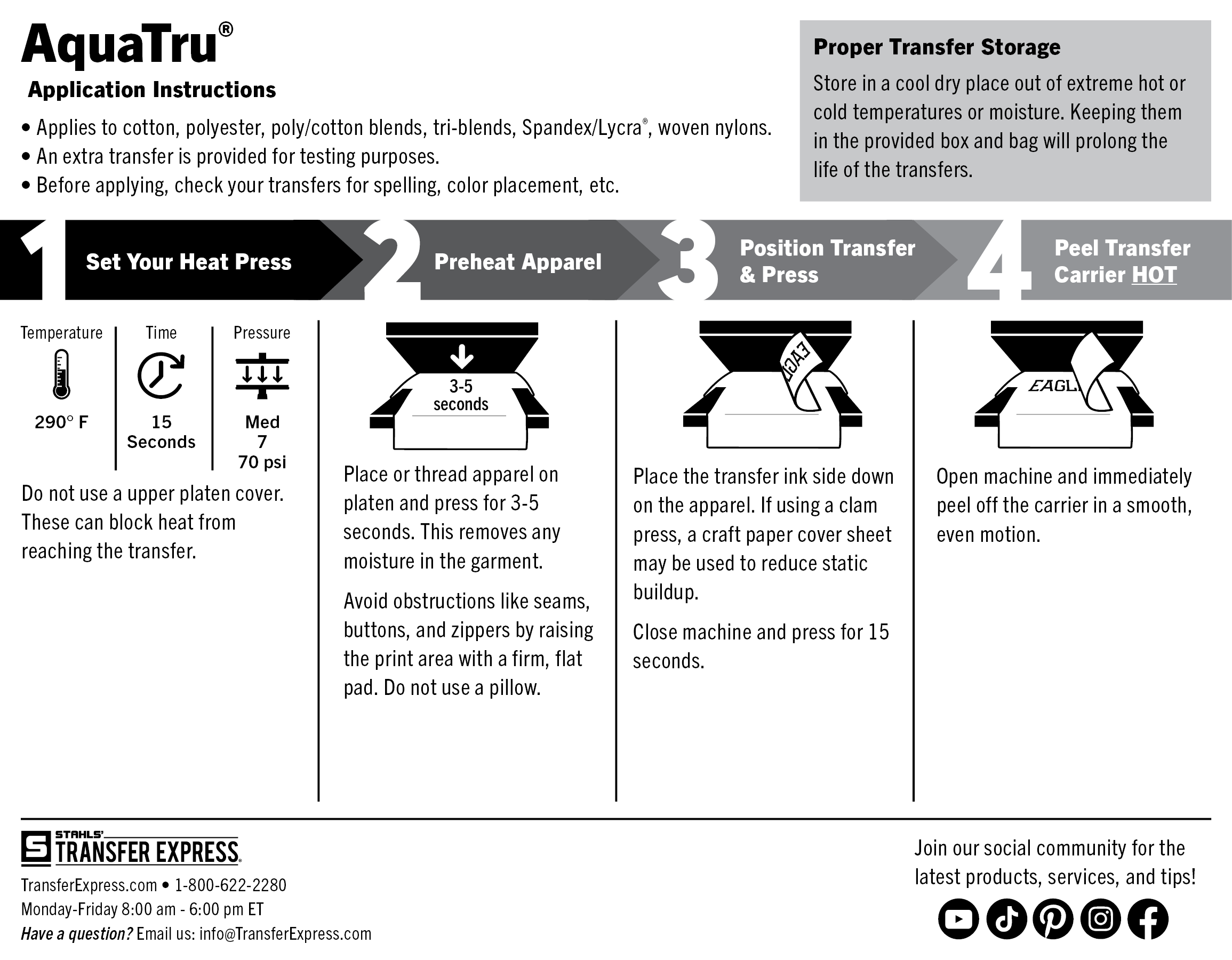 The following application instructions are for using with a Hotronix brand heat press.