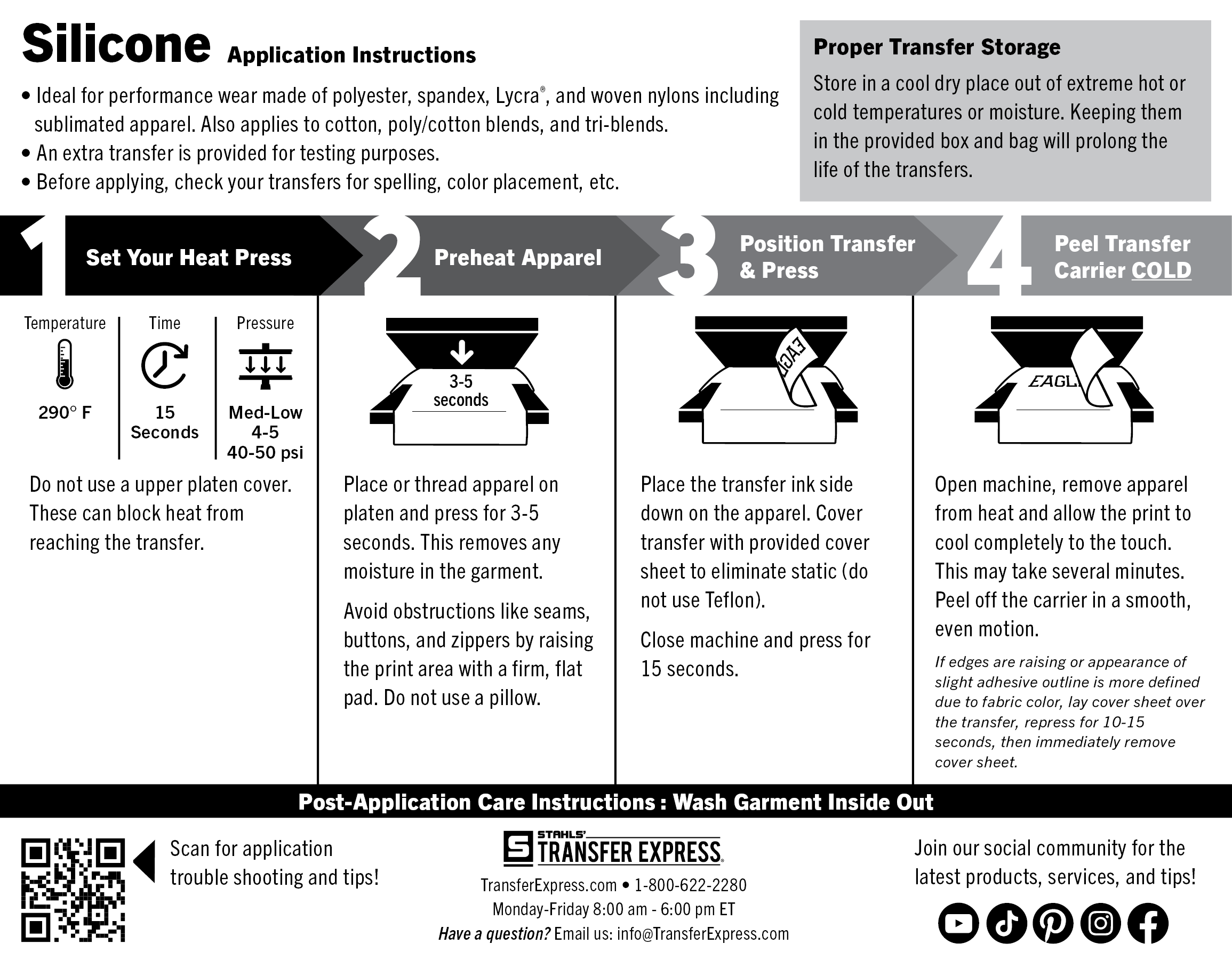 - Peel: Hot (peel immediately within 1-2 seconds, with no hesitation while still on the press)