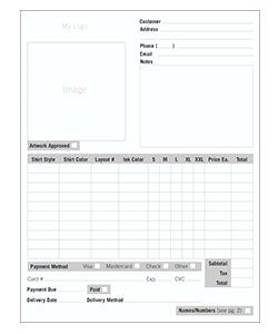 Custom Apparel Work Order Form