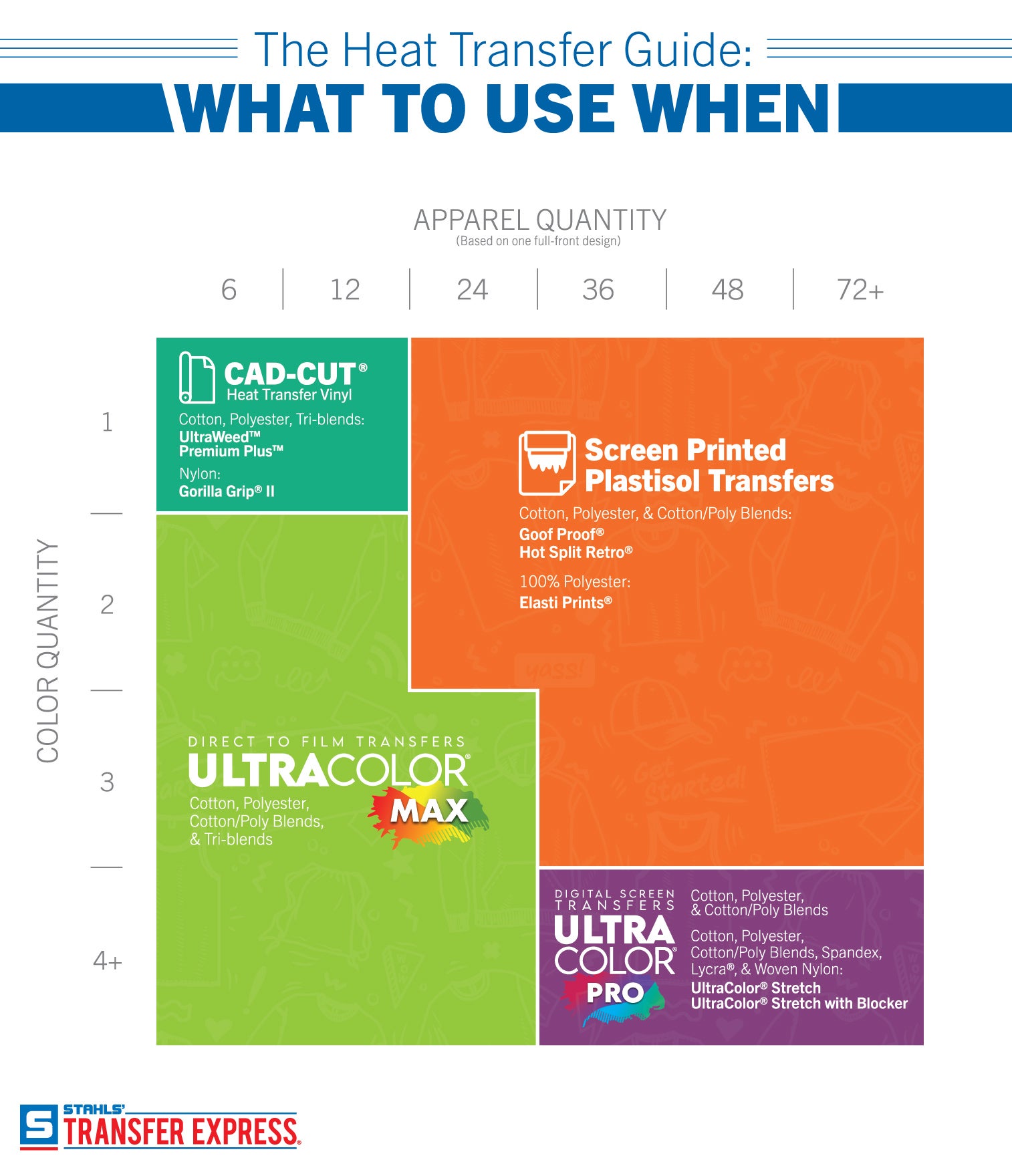 Get fast and easy quotes for your custom screen printed transfers or full color transfers using the pricing calculators below.