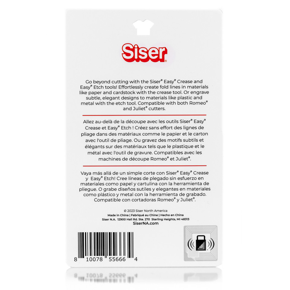 Go beyond cutting with the Siser Easy Crease and Easy Etch tools! Effortlessly create fold lines in materials like paper and cardstock to create cards, boxes and 3D art with the Easy Crease tool, or engrave subtle, elegant designs in materials like acrylic and metal for keychains and LED signs with the Easy Etch tool. Compatible with both Romeo and Juliet cutters, these new tools help take your creativity to a whole new level!